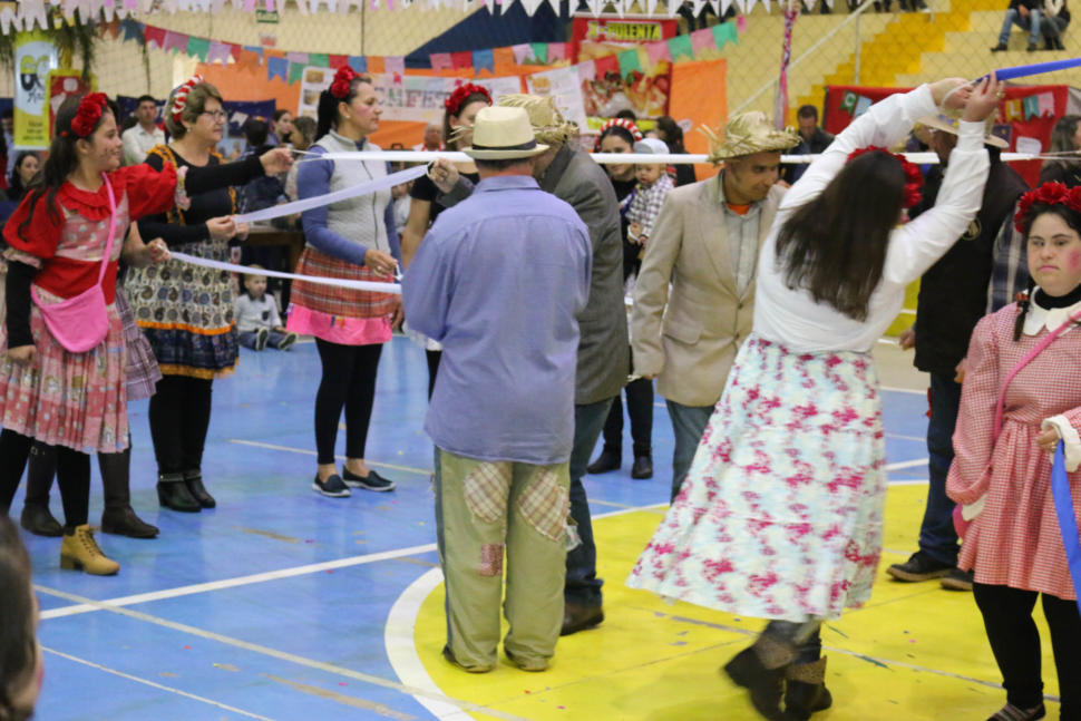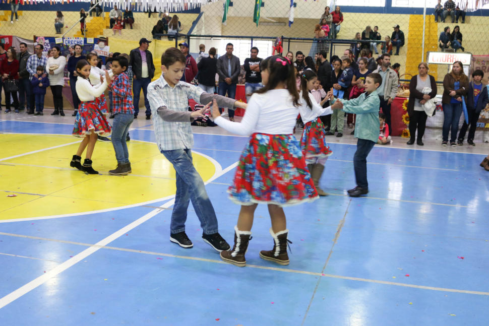 No domingo, a festa iniciou no período vespertino, e o público presente apreciou as danças das crianças das escolas municipais e APAE, ensaiadas pela equipe de colaboradores das escolas.
