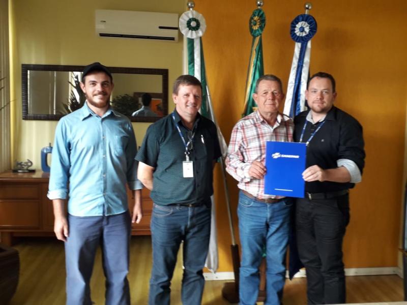 O prefeito Neuri Gehlen recebeu em seu gabinete o gerente regional da Sanepar Ednilson Albani, o qual apresentou a prestação de contas da Sanepar sobre a concessão de uso que possui no município de Mariópolis.