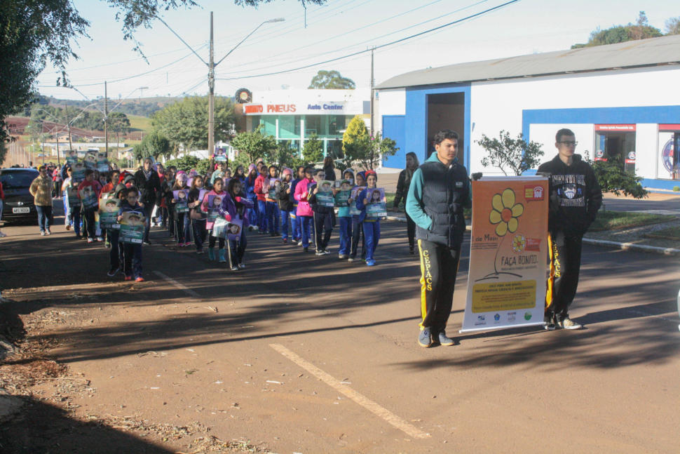 Com faixas e cartazes os alunos levaram a conscientização e sensibilização as ruas, lembrando da importância de proteger as crianças e adolescentes como também de denunciar casos de abuso e exploração sexual.