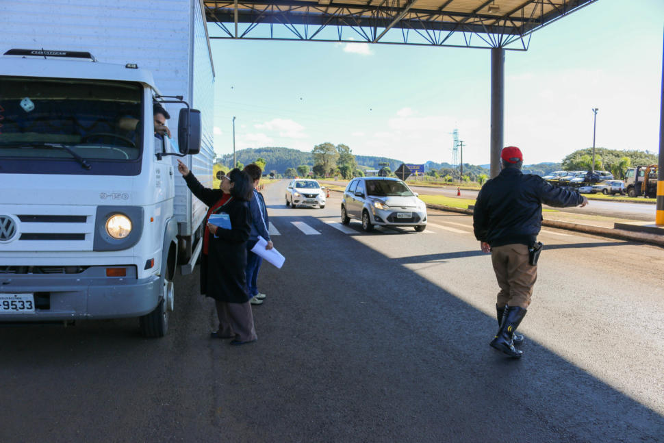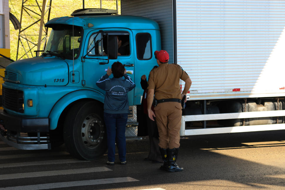 Na ação, os motoristas que passavam pela PRT – 280 eram abordados pelos Policiais Rodoviários e uma equipe de Agente Comunitário de Saúde distribuiu panfletos e colou adesivos da Campanha Maio Amarelo nos veículos.