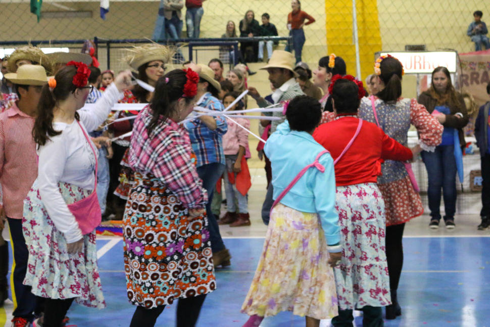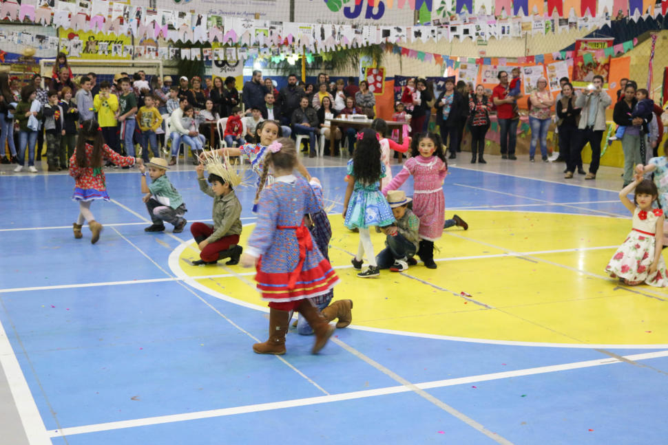 No domingo, a festa iniciou no período vespertino, e o público presente apreciou as danças das crianças das escolas municipais e APAE, ensaiadas pela equipe de colaboradores das escolas.