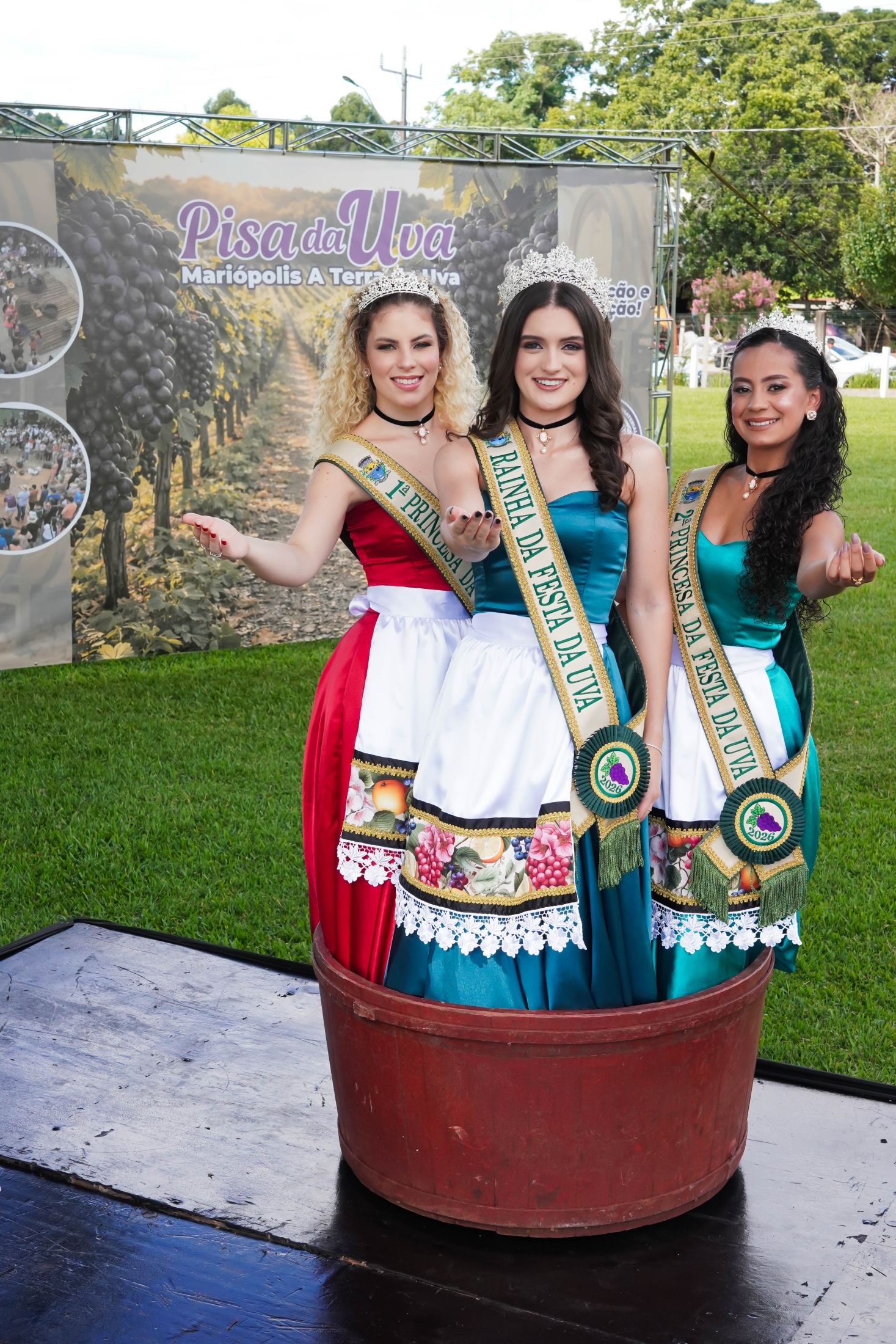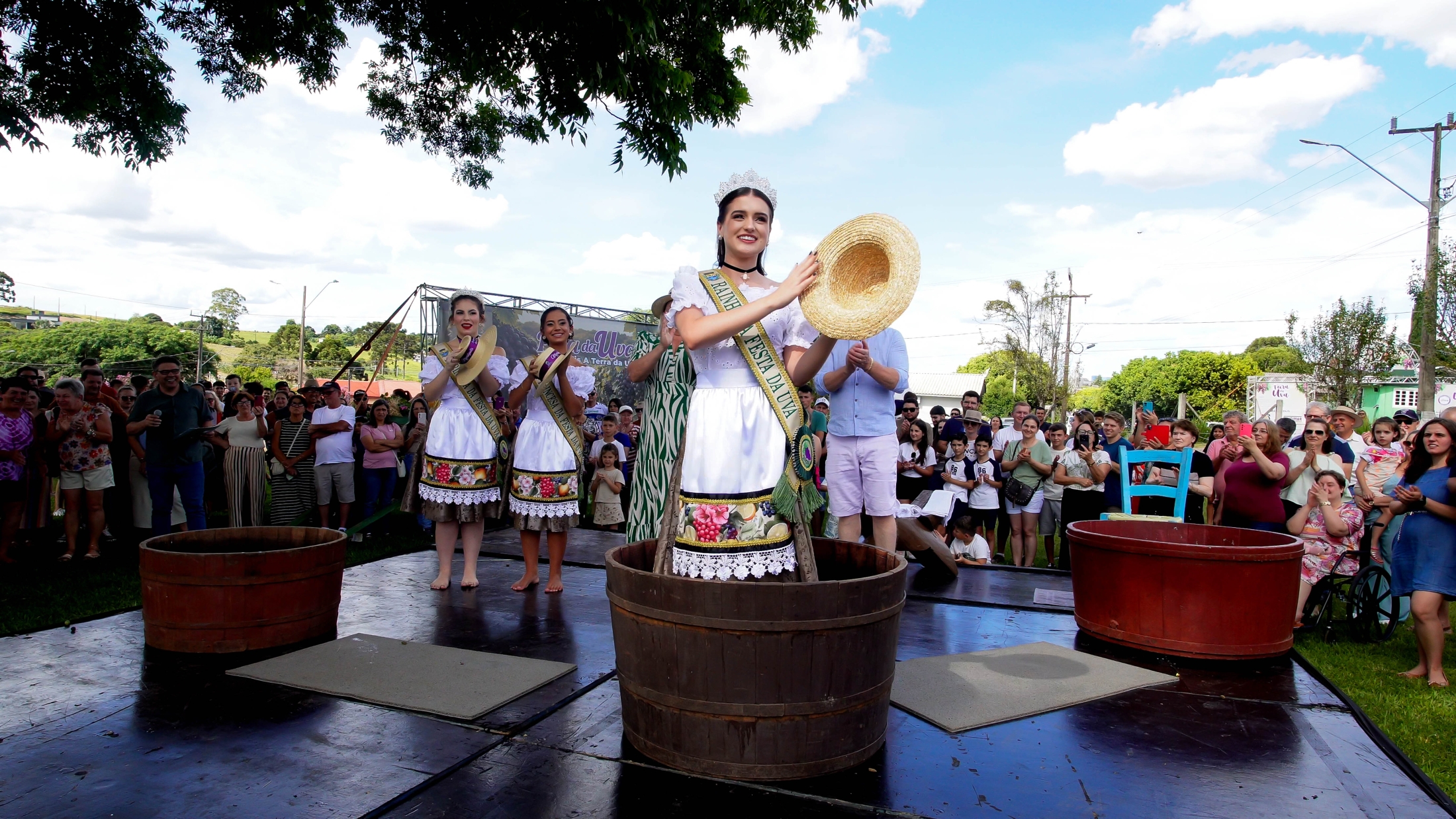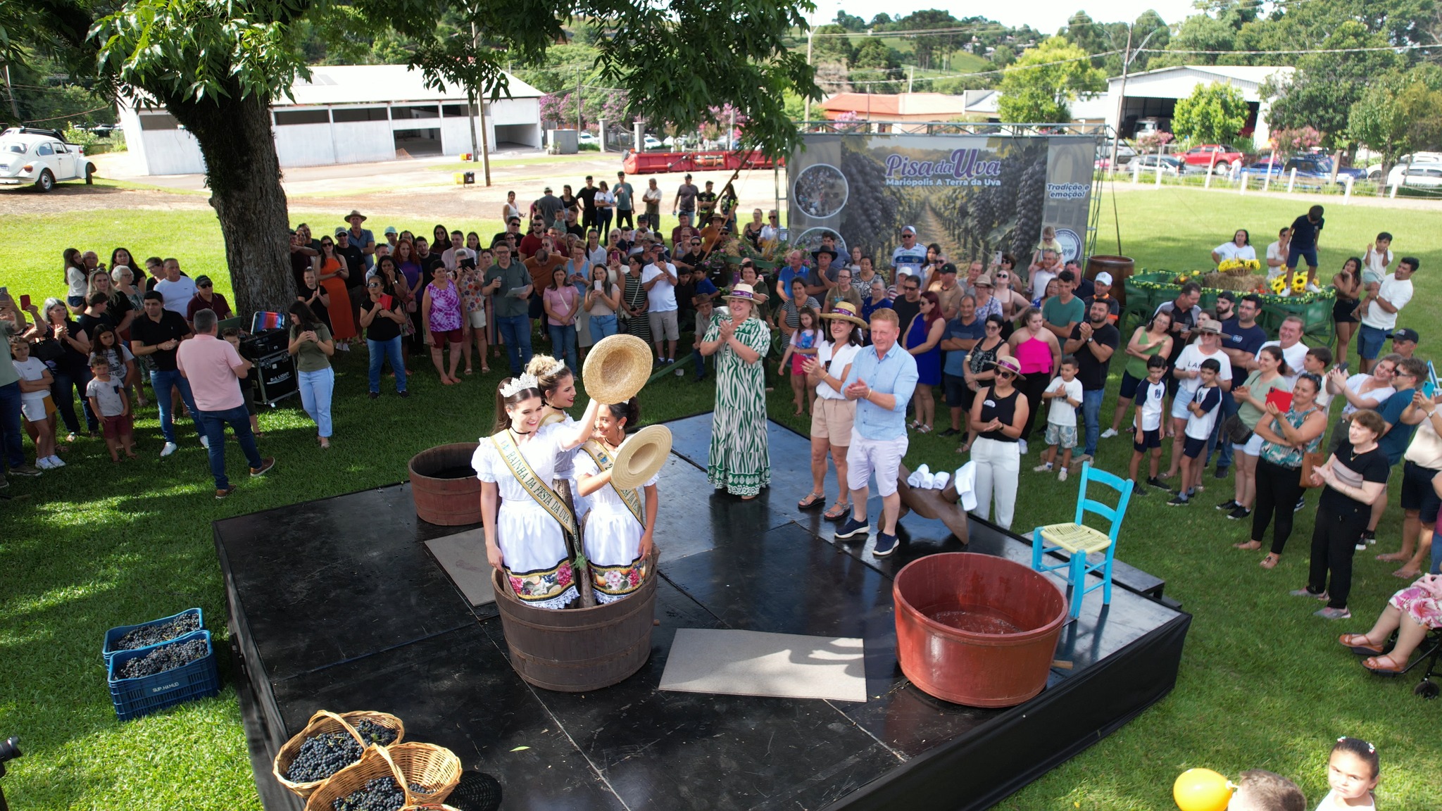 A tradicional Pisa da Uva foi um dos momentos mais simbólicos da Festa da Uva, reunindo um público participativo que viveu de perto essa tradição passada entre gerações. Um instante de alegria, cultura e conexão com as raízes que fazem da uva parte da nossa história!
