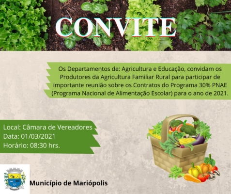 OPORTUNIDADE DE RENDA PARA PRODUTORES DA AGRICULTURA FAMILIAR!