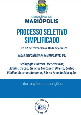 PSS 01 2023 Mariópolis - Homologação Preliminar e Classificação Preliminar