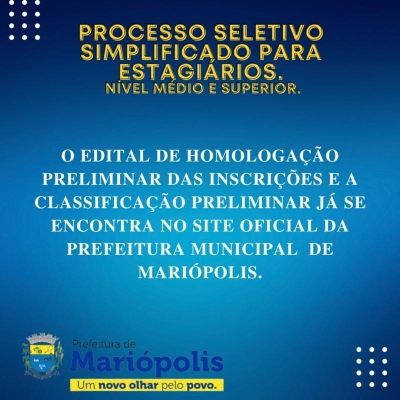 Edital de Homologação Preliminar das Inscrições e Classificação Preliminar do PSS para estagiários, já esta disponível.