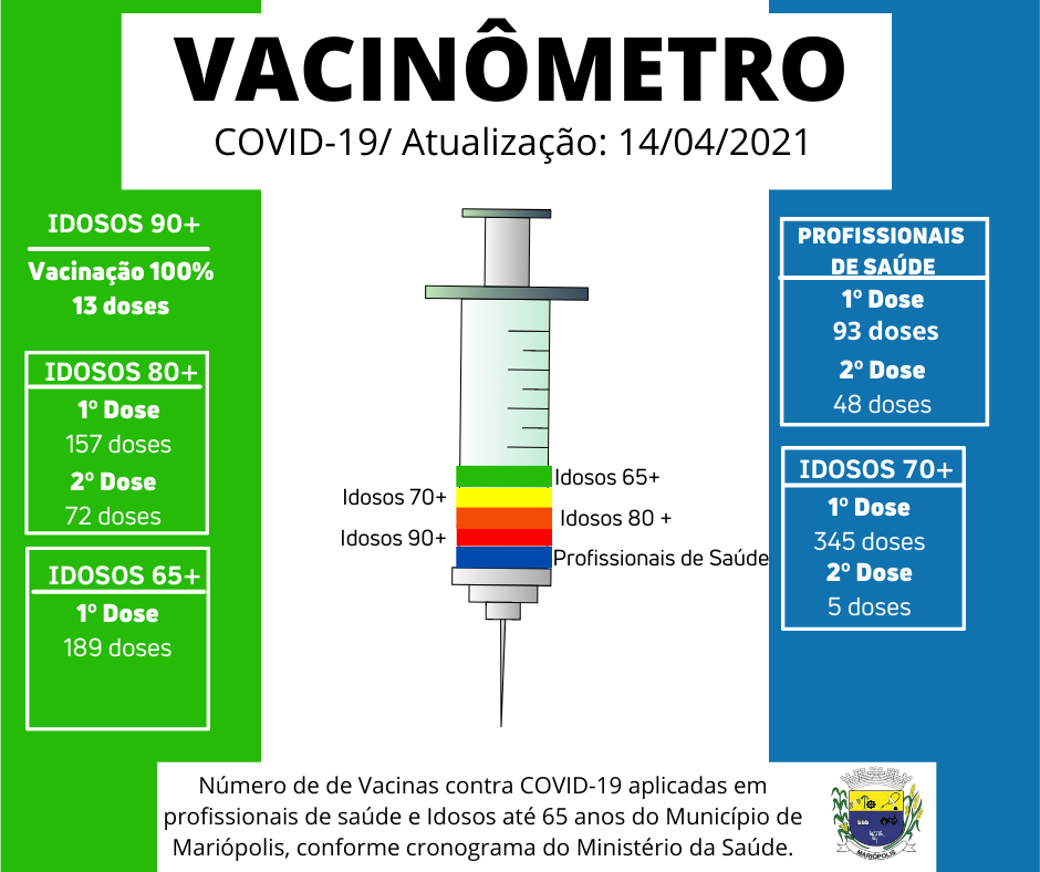 A imunização atingiu ate o momento a faixa etária 65+ nos próximos dias outras faixas etárias serão contempladas.