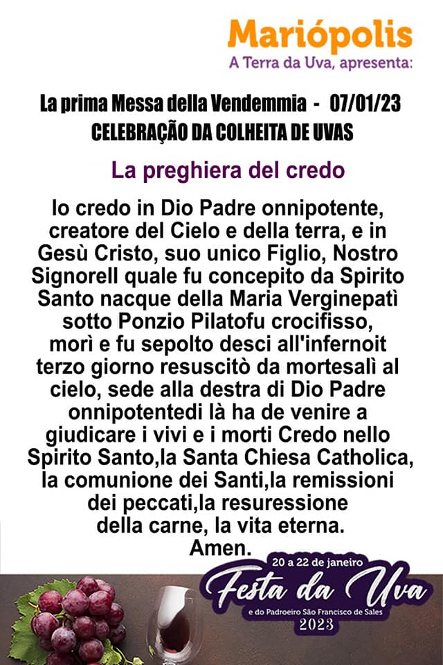 Que bom! Então comece a "treinar" as orações do Creio e Pai-Nosso em italiano.