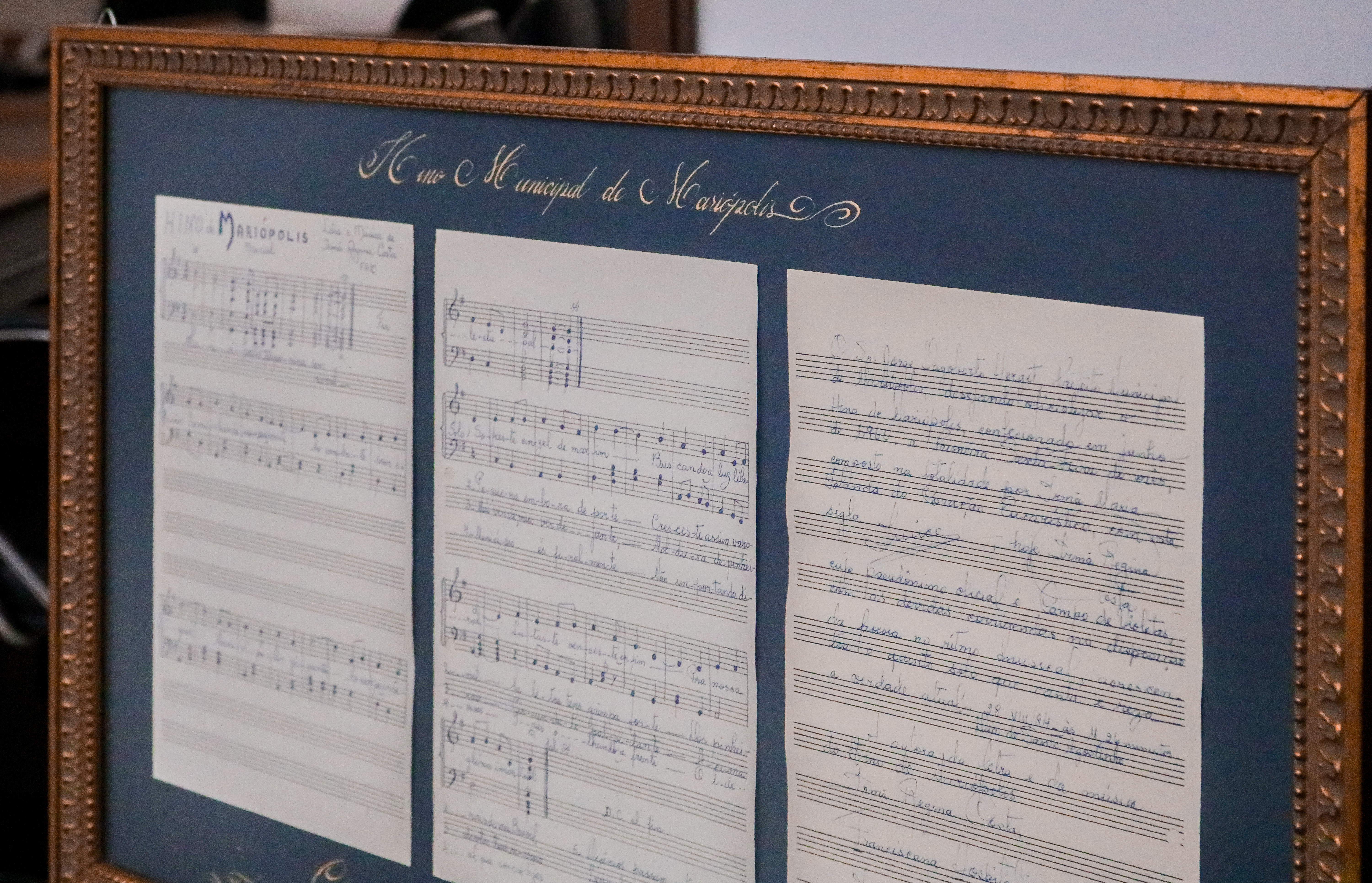 Conheceram a história da Irmã Regina Costa, autora do Hino de Mariópolis, o primeiro patrimônio material tombado da cidade. Puderam ver de perto a partitura original e a cópia que encontra-se afixada no Departamento de Cultura.